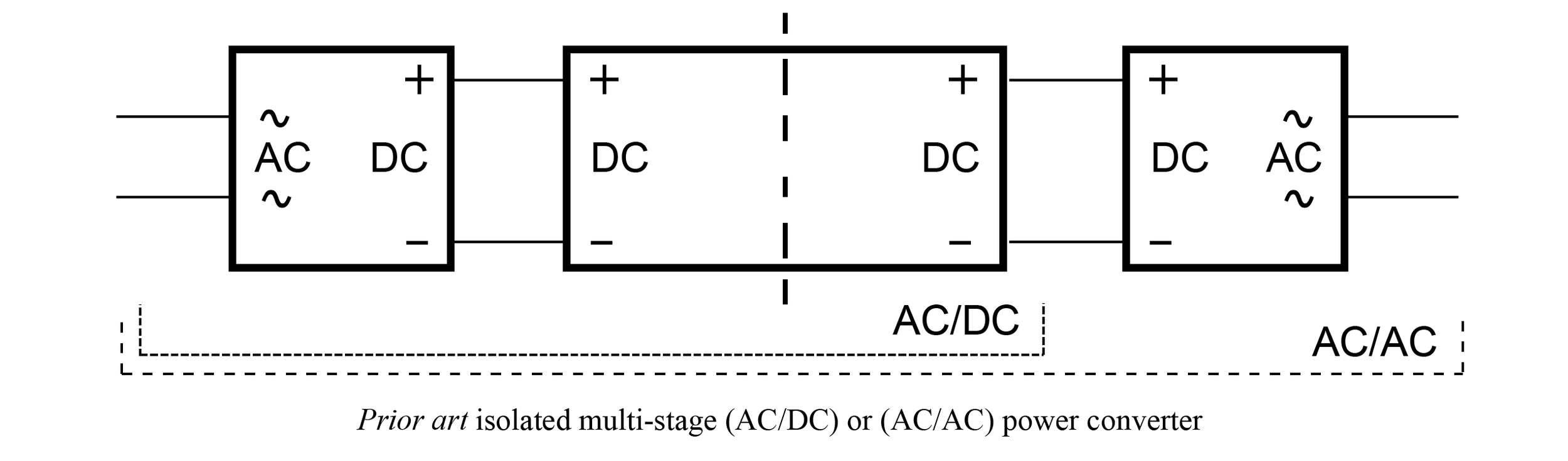 Our novel architecture translates to opportunities for parts count reduction and improvement in efficiency for AC coupled converters with isolated bidirectional DC energy storage, and opportunities for improved efficiency and performance of DC/DC power converters. The single stage power supply technology has beneficial characteristics across a number of illustrated example applications.